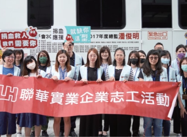 聯華實業今年持續舉辦「2022 捐血相揪」公益捐血活動,於2022年9月27日在聯華南港大樓召集同仁挽袖捐血獻愛心,獲得關係企業同仁及社區民眾踴躍響應,合計募集138袋熱血,活動圓滿落幕,目的就是希望幫助有急需輸血的人,為社會盡份心力,把愛散播到各地。